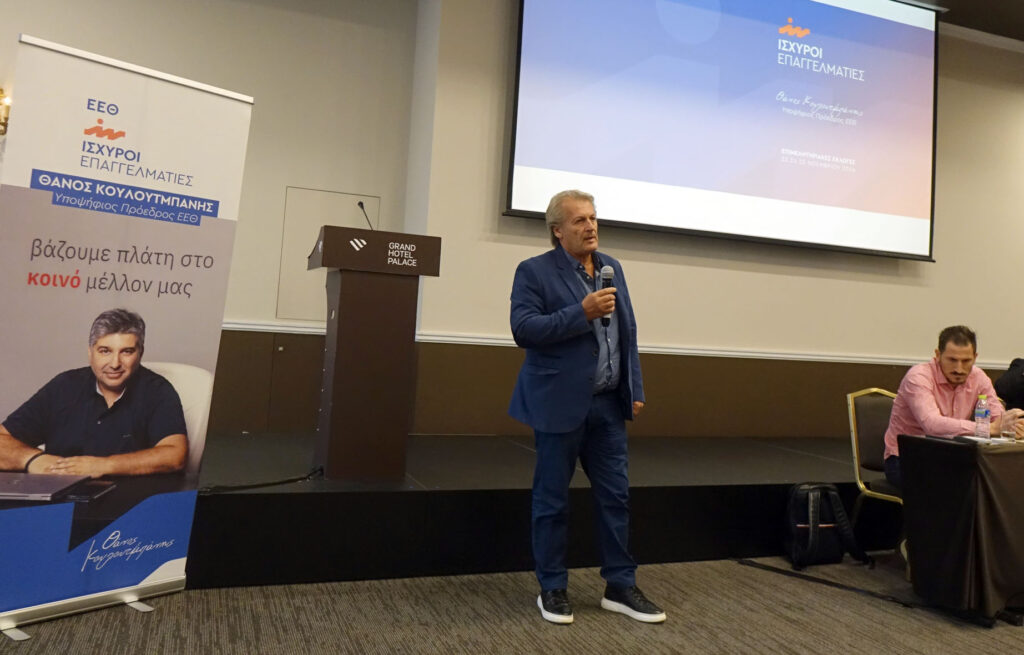 κεντρικό ξενοδοχείο της πόλης ο υποψήφιος πρόεδρος του ΕΕΘ, Θάνος Κουλουτμπάνης, σε